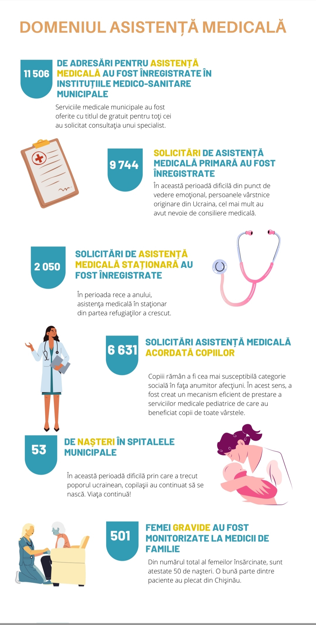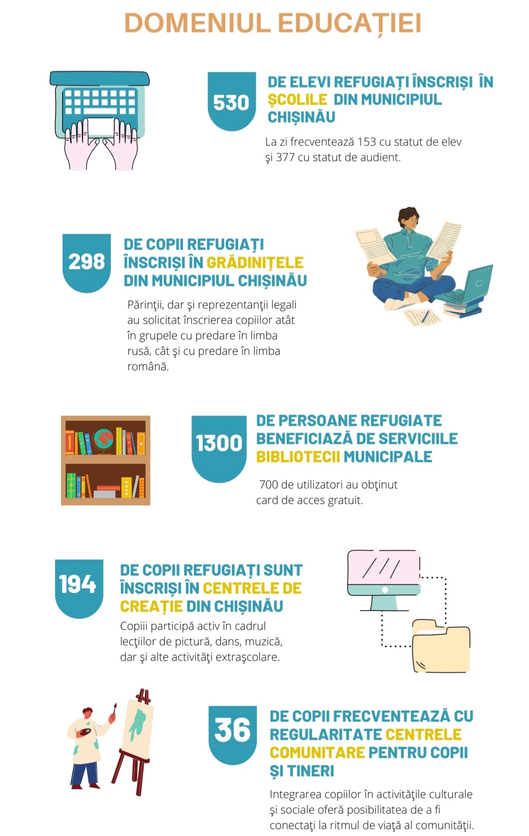 Prezentarea grafică a datelor statistice privind beneficiarii (refugiați din Ucraina) serviciilor municipale